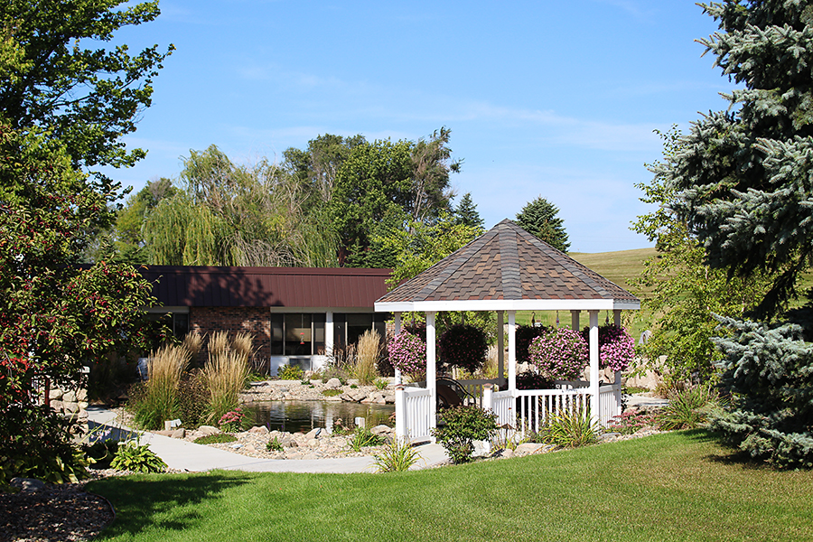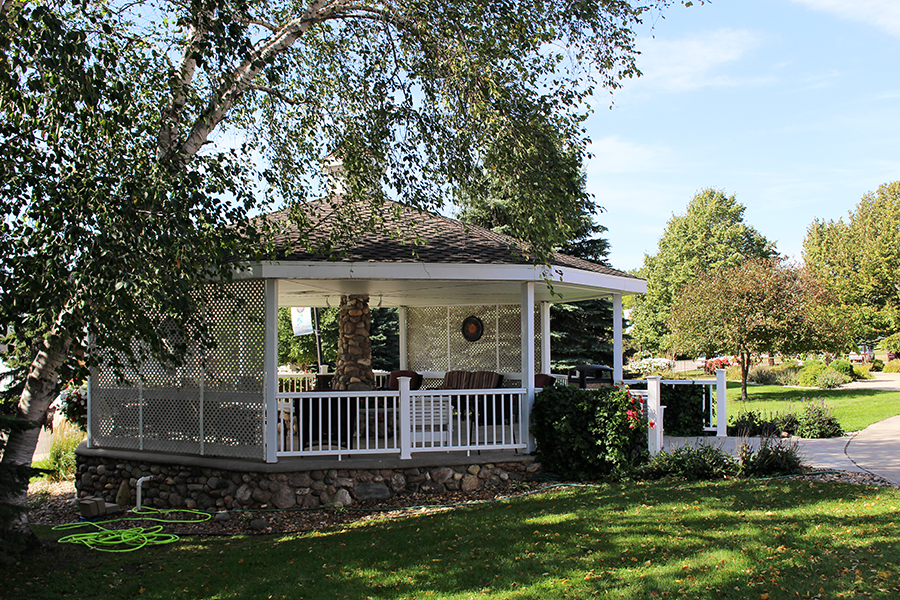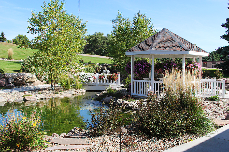 Outdoors, residents can enjoy beautiful flower arrangements, two gazebos, a small waterfall and pond, and a petting zoo. Staff have allowed residents to share in the responsibility of maintaining the grounds.